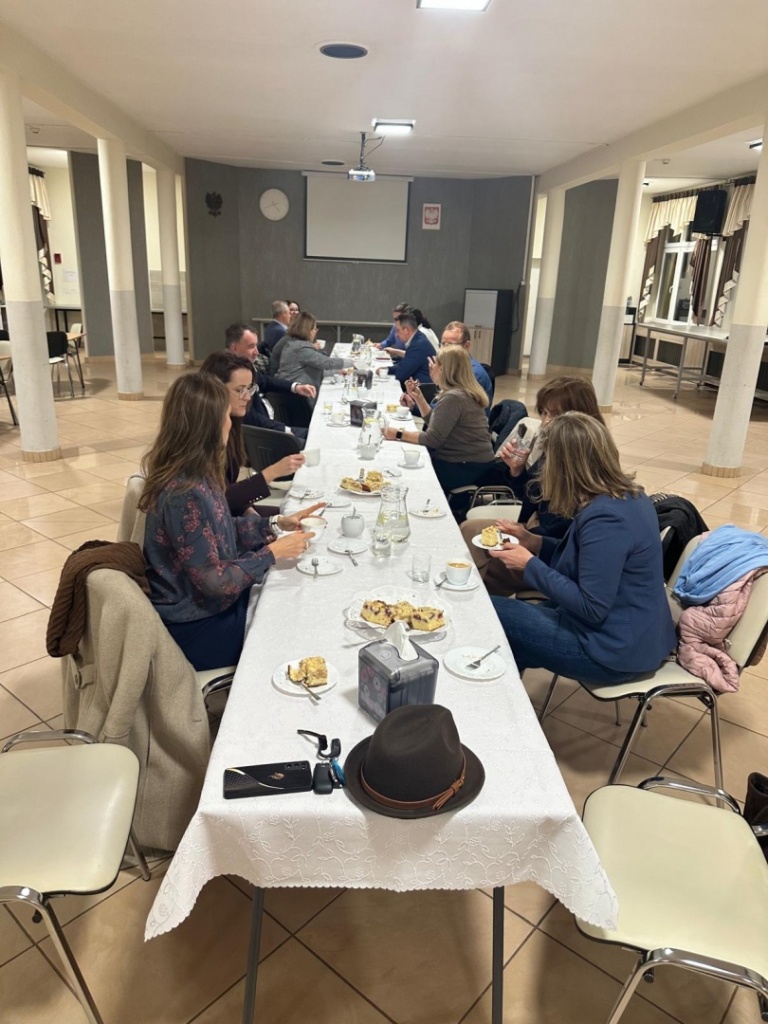 Była to świetna okazja, aby przedstawić krótko historię i ideę powstania naszego BCU. Zostały także omówione najważniejsze zadania statutowe BCU i ich realizacja. Zaprezentowaliśmy również partnerów, którzy współpracują z nami, moduły szkoleń branżowych jakie zostały przeprowadzone w ramach projektu w roku 2025. Był także czas na zwiedzanie pracowni w naszym BCU oraz szczegółowe omówienie ich wyposażenia w nowoczesne pomoce dydaktyczne. W dyskusji uczestnicy spotkania mogli wymienić się doświadczeniami związanymi z edukacją zawodową i branżową, podkreślali także istotę uczenia się przez całe życie oraz rolę współpracy między instytucjami odpowiedzialnymi za edukację zawodową i pracodawcami. Poruszone zostały ważne zagadnienia związane z energetyką odnawialną, ale także z perspektywami działania naszego BCU po zakończeniu projektu.